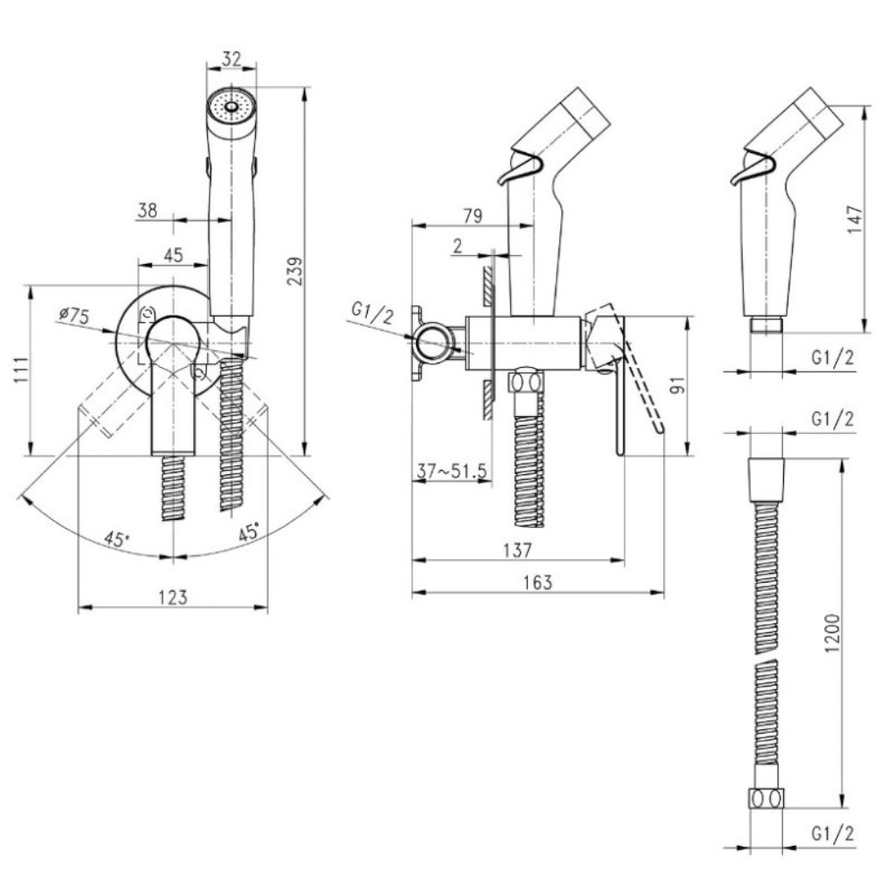 Душ гигиенический Cersanit Brasko Черный матовый 64103