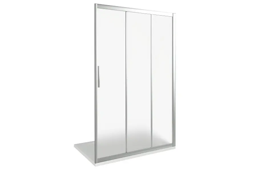 Душевая дверь Bas Orion обладает размером 130х185 см. Конструкция состоит из трех секций: одной неподвижной и двух раздвижных. Устанавливается в облицованный кафелем угол или нишу ванной комнаты на поддон или непосредственно на пол со встроенным душевым каналом или трапом