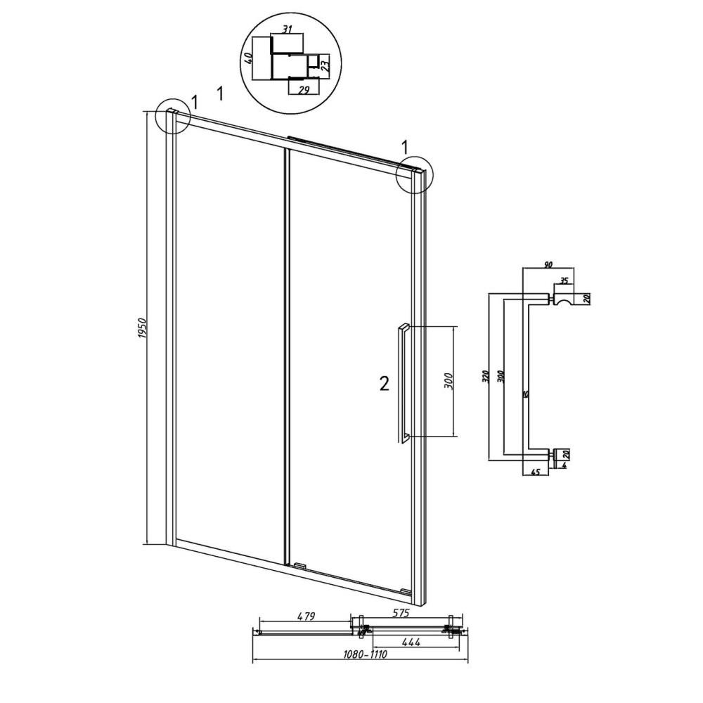 Душевая дверь Grossman Cosmo имеет размер 110х195 см. Прямоугольная форма, цвет профиля — графит, исполнение полотна двери — прозрачное. Конструкция состоит из 2 секций. Раздвижной механизм открывания. Устанавливается в облицованный кафелем угол или нишу ванной.