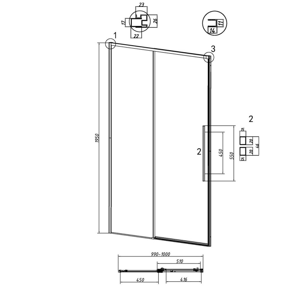 Душевая дверь Grossman Galaxy имеет размер 100х195 см. Прямоугольная форма, цвет профиля — золото, исполнение полотна двери — прозрачное. Конструкция состоит из 2 секций. Раздвижной механизм открывания. Устанавливается в облицованный кафелем угол или нишу ванной.