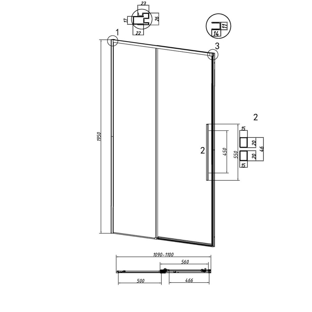 Душевая дверь Grossman Galaxy имеет размер 110х195 см. Прямоугольная форма, цвет профиля — черный, исполнение полотна двери — тонированное. Конструкция состоит из 2 секций. Раздвижной механизм открывания. Устанавливается в облицованный кафелем угол или нишу ванной.