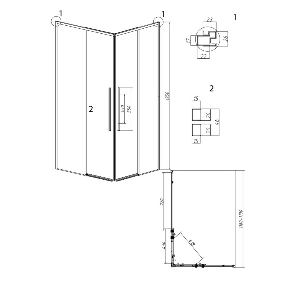 Душевая дверь Grossman Galaxy имеет размер 120х195 см. Прямоугольная форма, цвет профиля — черный, исполнение полотна двери — прозрачное. Конструкция состоит из 2 секций. Раздвижной механизм открывания. Устанавливается в облицованный кафелем угол или нишу ванной.
