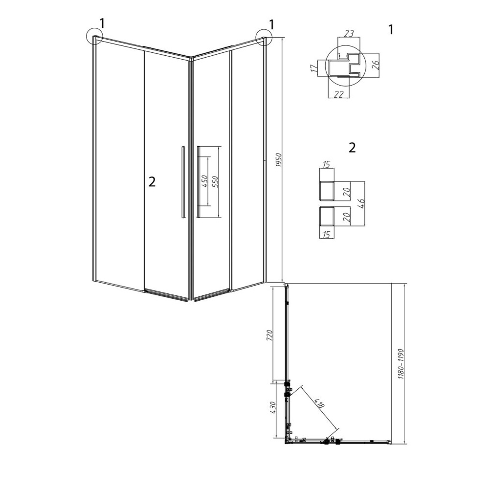 Душевая дверь Grossman Galaxy 120 Черный / Тонированное 1/2.K33.01.12.21.10