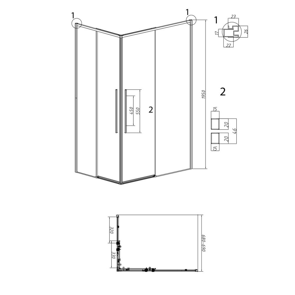 Душевая дверь Grossman Galaxy 70 Черный / Тонированное 1/2.K33.01.70.21.10
