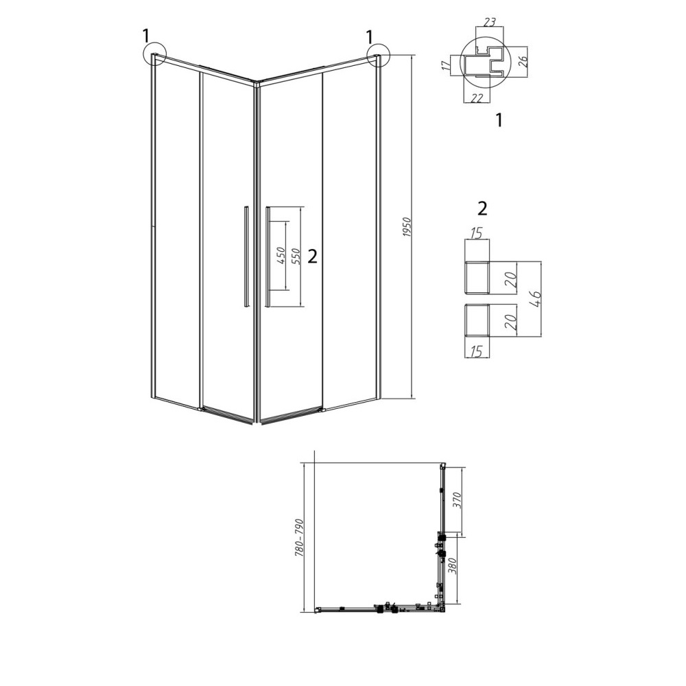 Душевая дверь Grossman Galaxy имеет размер 80х195 см. Прямоугольная форма, цвет профиля — черный, исполнение полотна двери — прозрачное. Конструкция состоит из 2 секций. Раздвижной механизм открывания. Устанавливается в облицованный кафелем угол или нишу ванной.