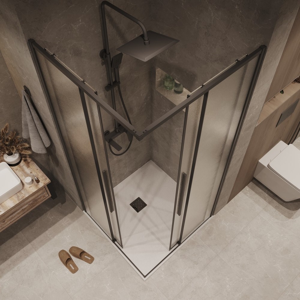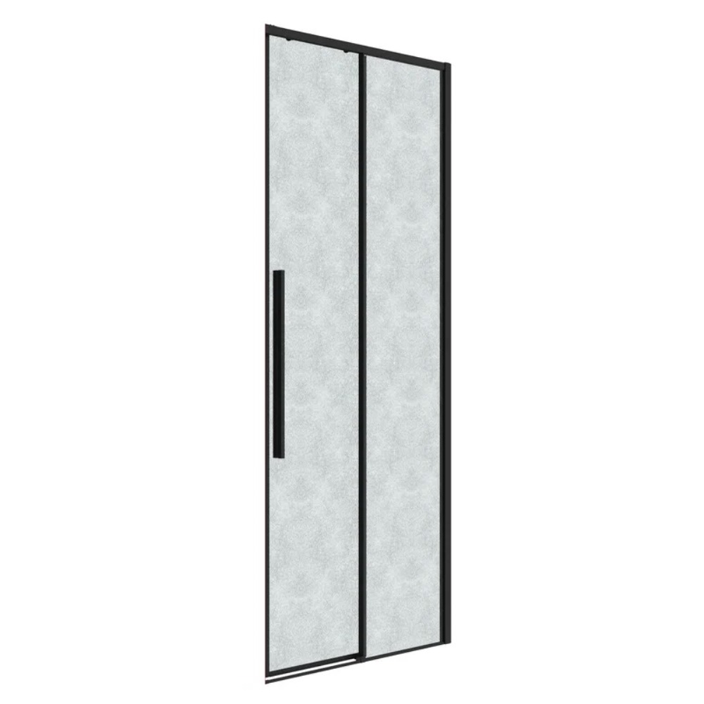 Душевая дверь Grossman Galaxy имеет размер 80х195 см. Прямоугольная форма, цвет профиля — черный, исполнение полотна двери — рифленое. Конструкция состоит из 2 секций. Раздвижной механизм открывания. Устанавливается в облицованный кафелем угол или нишу ванной.