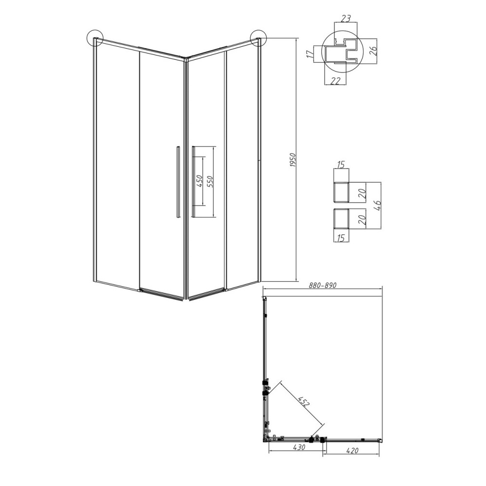 Душевая дверь Grossman Galaxy 90 Черный / Прозрачное 1/2.K33.01.90.21.00