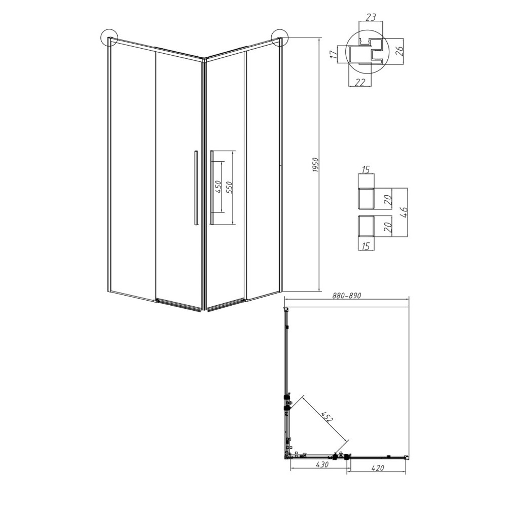 Душевая дверь Grossman Galaxy 90 Черный / Тонированное 1/2.K33.01.90.21.10