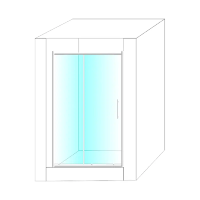 Душевая дверь Водный мир обладает размером 110хх185 см. Конструкция состоит из двух секций: одной неподвижной и одной раздвижной. Устанавливается в облицованный кафелем угол ванной комнаты на поддон или непосредственно на пол со встроенным душевым каналом или трапом.