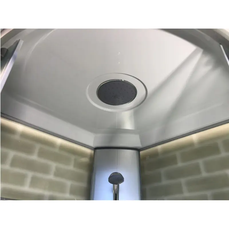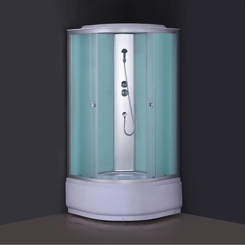 Душевая кабина Comforty 300 имеет размер 90х90 см. Форма — четверть круга, цвет хром, полотно крезет. Комплектация: две раздвижные створки и магнитным профилем, двухрежимный смеситель, верхний душ, ручной душ, двойные ролики сверху и снизу, сифон с донным клапаном. Высокий поддон.