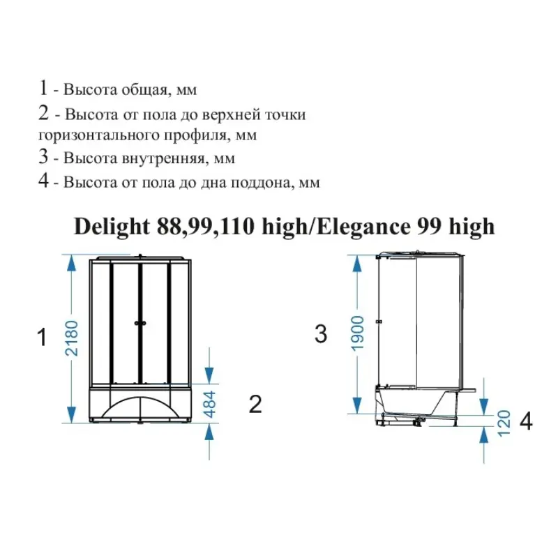 Душевая кабина Domani-Spa Delight Slim high имеет размеры 80х80х218 см. Форма — четверть круга, цвет белый, исполнение полотна двери матовое. Механизм открывания раздвижной. Поддон высокий и стеклянная белая задняя панель.