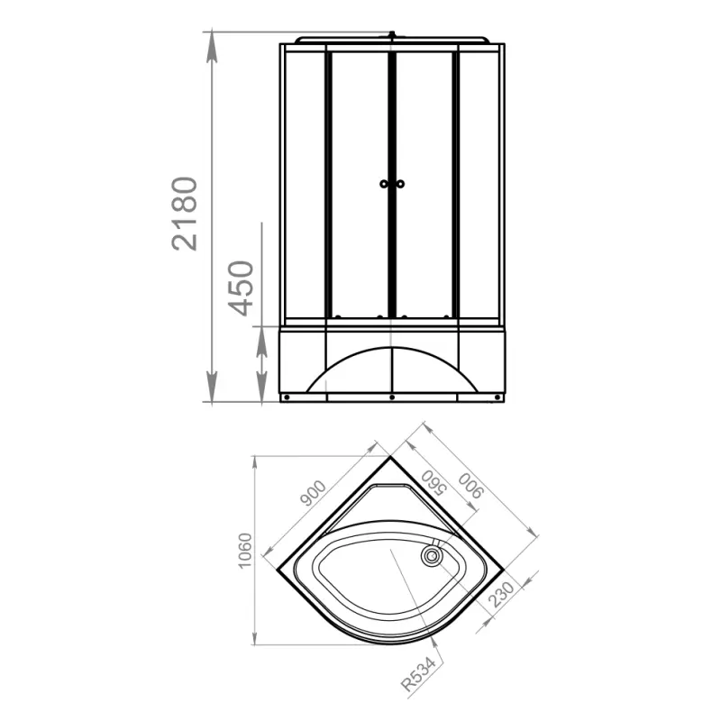 Душевая кабина Domani-Spa Delight Slim high имеет размеры 90х90х218 см. Форма — четверть круга, цвет белый, исполнение полотна двери матовое. Механизм открывания раздвижной. Поддон высокий и стеклянная белая задняя панель.
