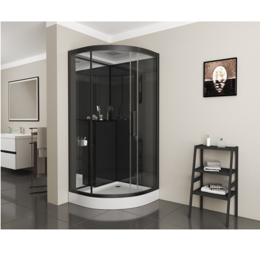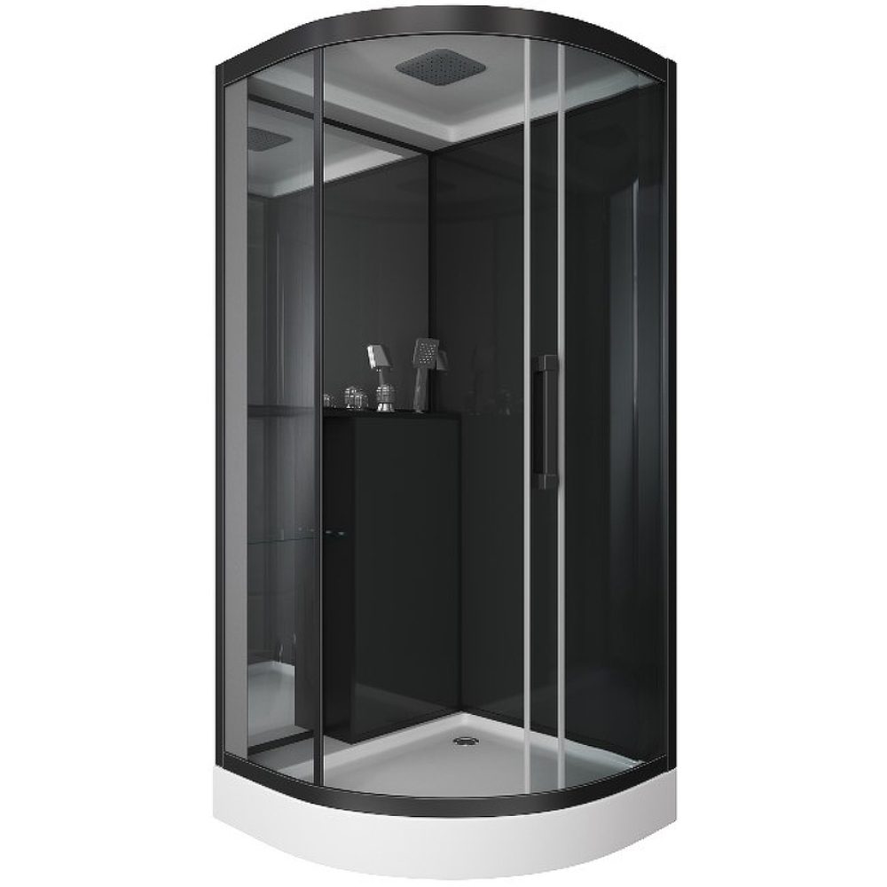 Душевая кабина Grossman Classic имеет размеры 100х100х215 см. Форма -Четверть круга, цвет черный, исполнение полотна двери прозрачное. Механизм открывания раздвижной. Поддон низкий.