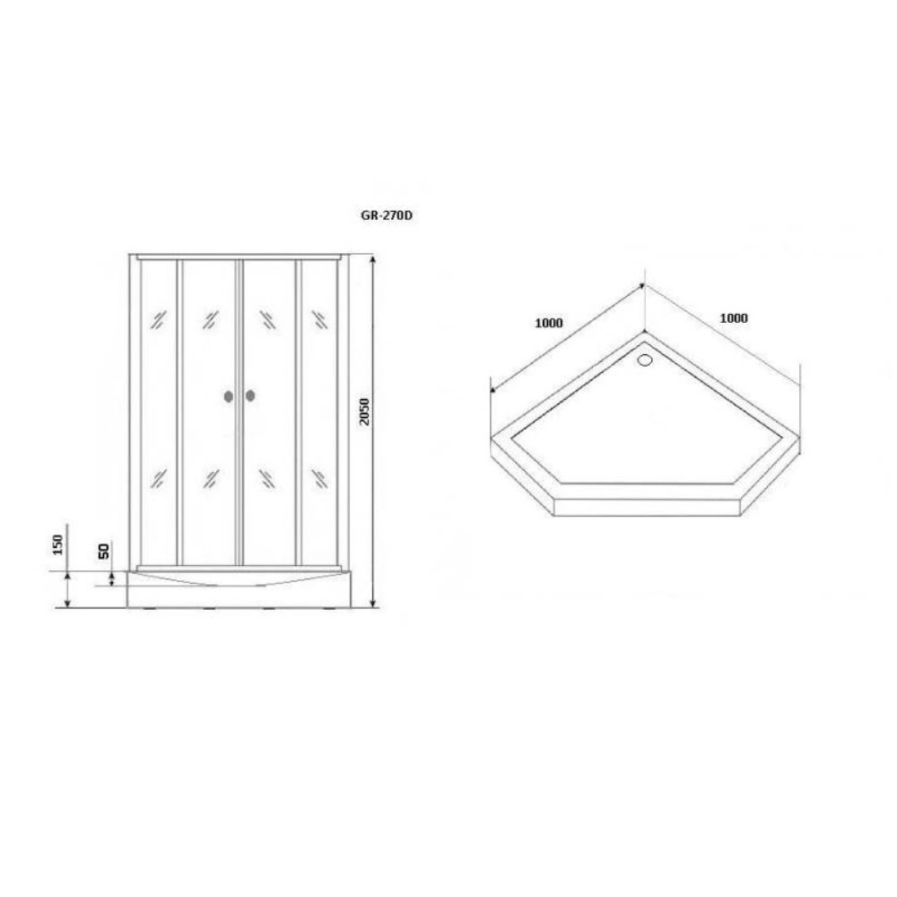 Душевая кабина Grossman Classic имеет размеры 100х100х205 см. Форма -пятиугольная, цвет хром, исполнение полотна двери матовое. Механизм открывания раздвижной. Поддон низкий.