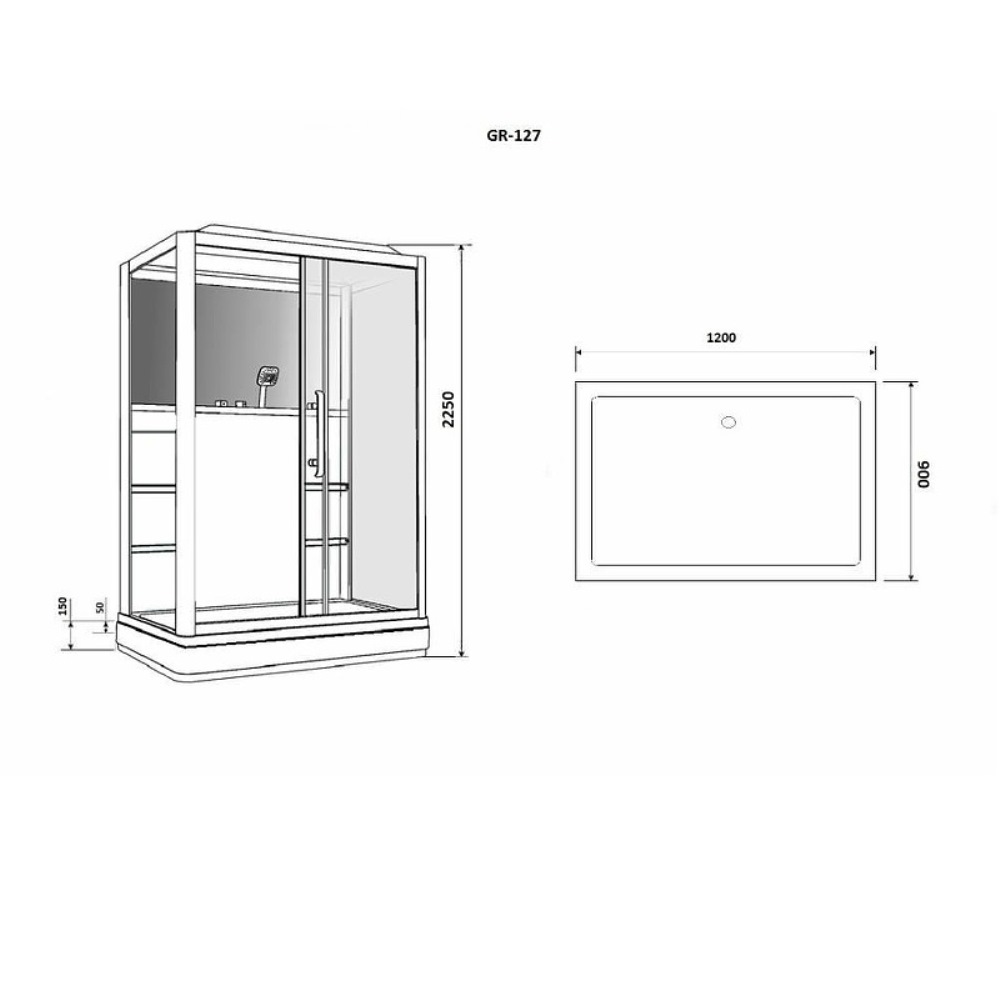 Душевая кабина Grossman Classic имеет размеры 120х90х225 см. Форма -прямоугольная, цвет белый, исполнение полотна двери прозрачное. Механизм открывания раздвижной. Поддон низкий.