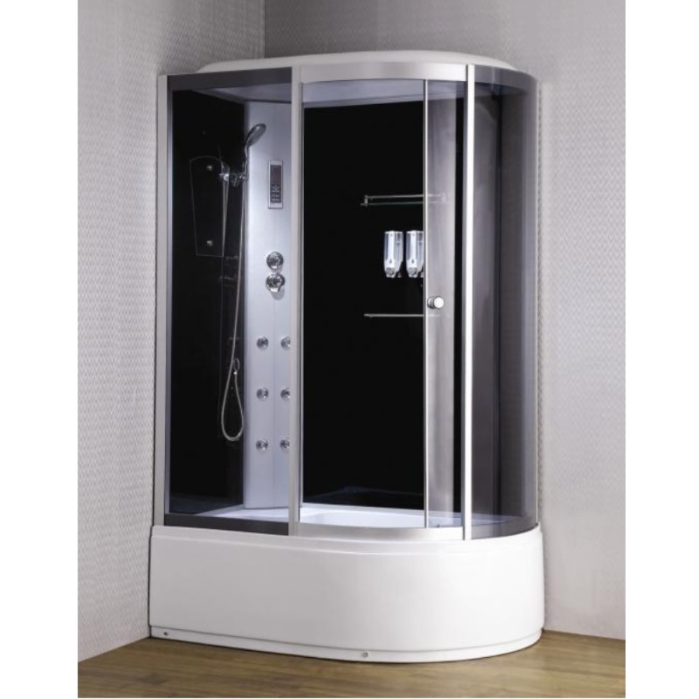 Душевая кабина Loranto Cs-00 имеет размеры 135х85 см. Форма — асимметричная, профиль хром, исполнение полотна двери тонированное. Высокий поддон.