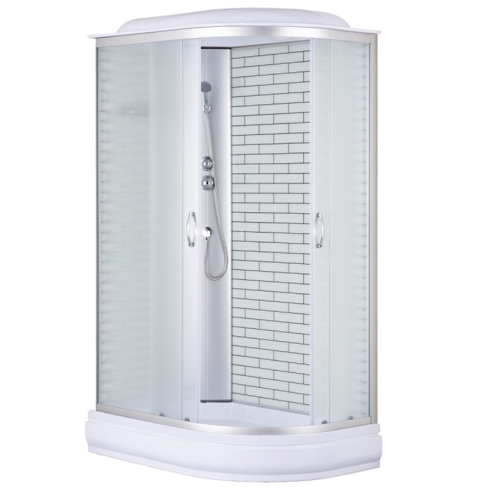Душевая кабина Loranto Cs имеет размеры 120х80 см. Форма — асимметричная, профиль хром, исполнение полотна двери матовое. Средний поддон.