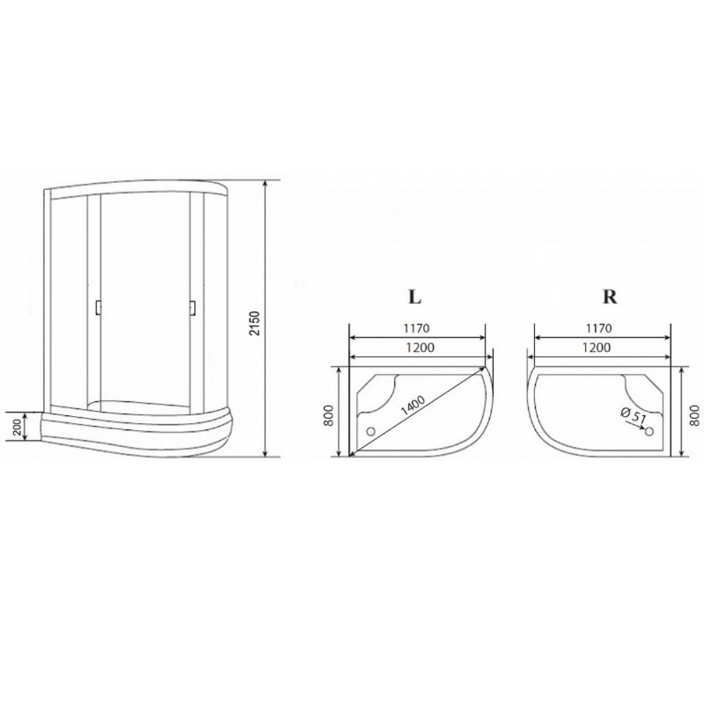 Душевая кабина Loranto Cs имеет размеры 120х80 см. Форма — асимметричная, профиль хром, исполнение полотна двери прозрачное. Средний поддон.