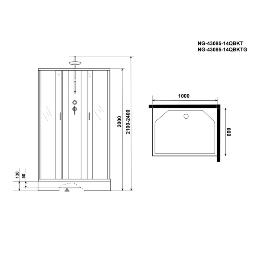 Душевая кабина Niagara Classic 100х80 Хром / Матовое NG-43085-14QBKTG