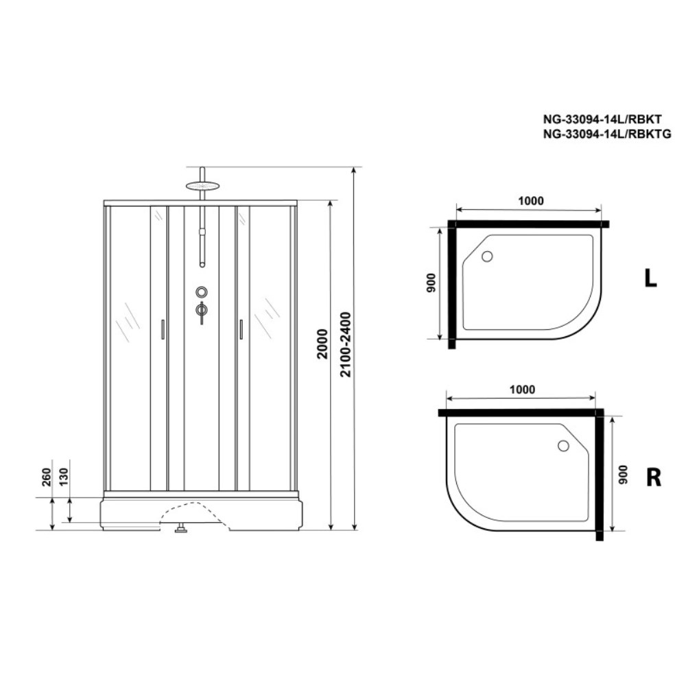 Душевая кабина Niagara Classic 100х90 левая Хром / Прозрачное NG-33094-14LBKT
