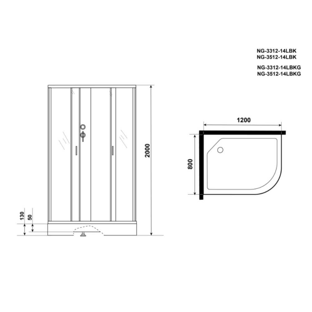 Душевая кабина Niagara Classic 120х80 левая Хром / Матовое NG-3312-14LBK