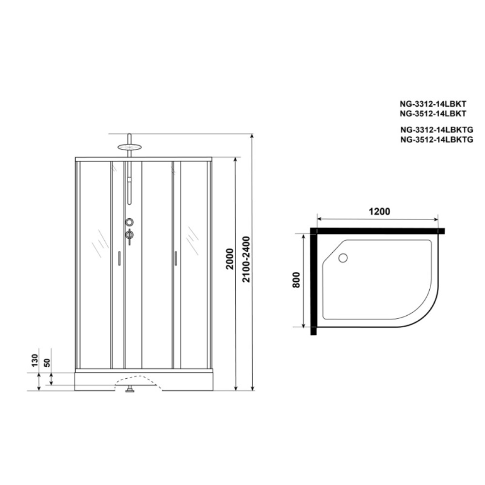 Душевая кабина Niagara Classic 120х80 левая Хром / Матовое NG-3312-14LBKTG