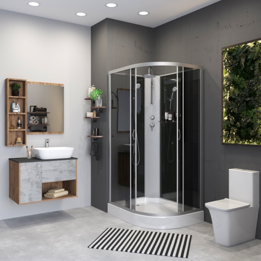 Душевая кабина Niagara Classic имеет размеры 120х80х240 см. Форма — асимметричная, цвет хром, исполнение полотна двери тонированное. Механизм открывания раздвижной. Поддон низкий.