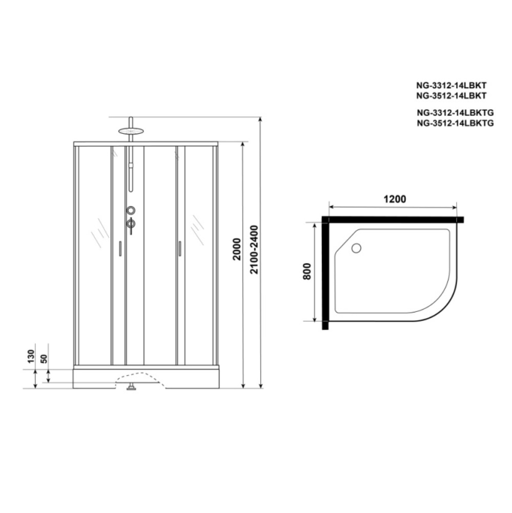 Душевая кабина Niagara Classic 120х80 левая Хром / Тонированное NG-3512-14LBKT