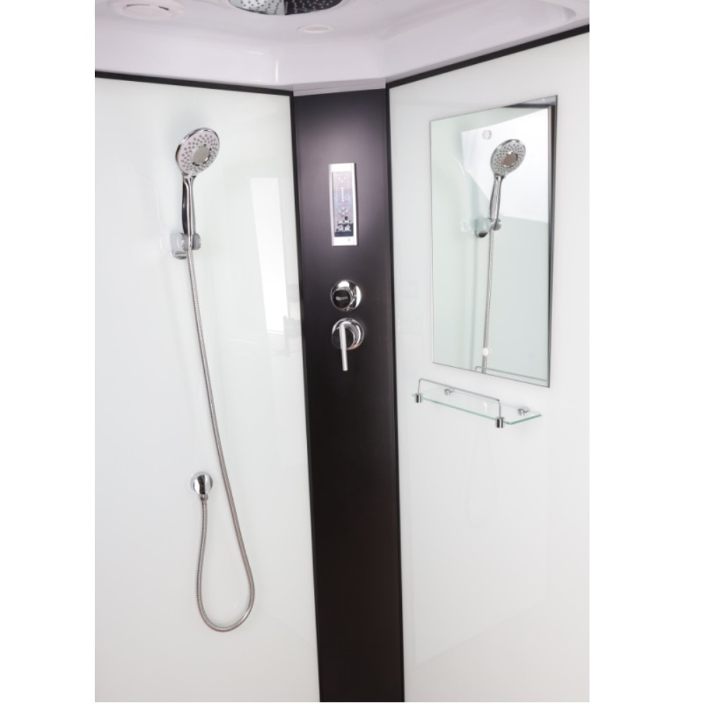Душевая кабина Niagara Classic имеет размеры 80х80х215 см. Форма — четверть круга, цвет черный, исполнение полотна двери прозрачное. Механизм открывания раздвижной. Поддон средний.