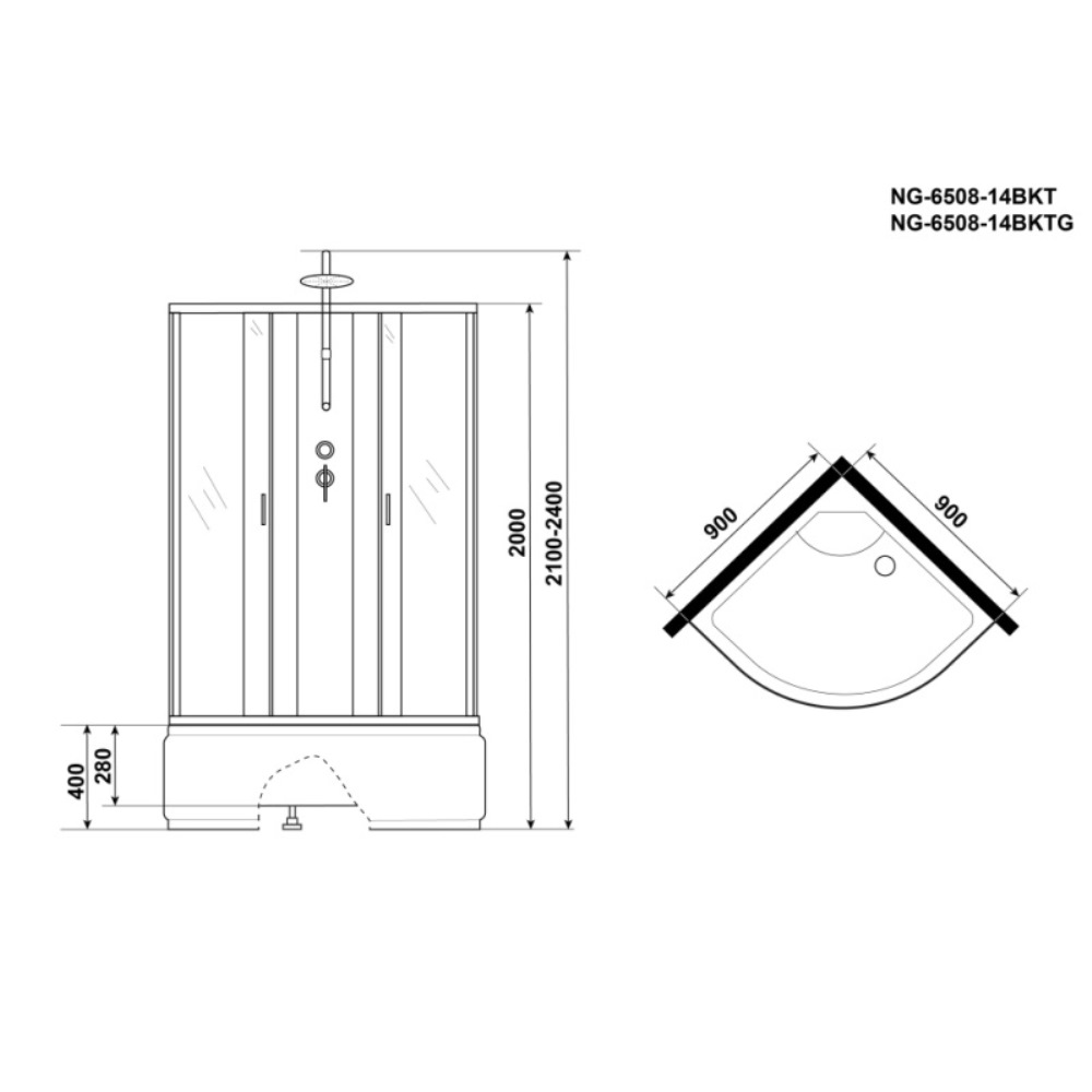 Душевая кабина Niagara Classic имеет размеры 90х90х240 см. Форма — четверть круга, цвет черный, исполнение полотна двери тонированное. Механизм открывания раздвижной. Поддон высокий.