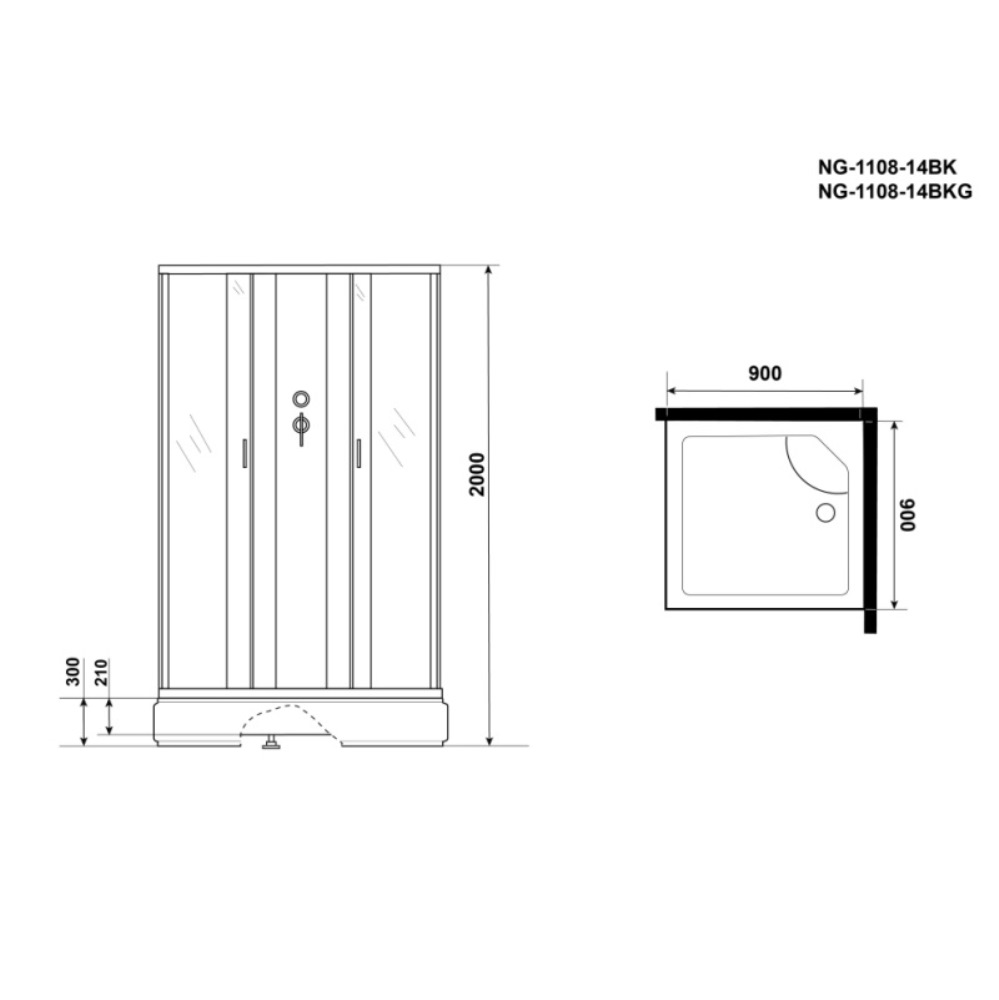 Душевая кабина Niagara Classic 90х90 Хром / Матовое NG-1108-14BKG