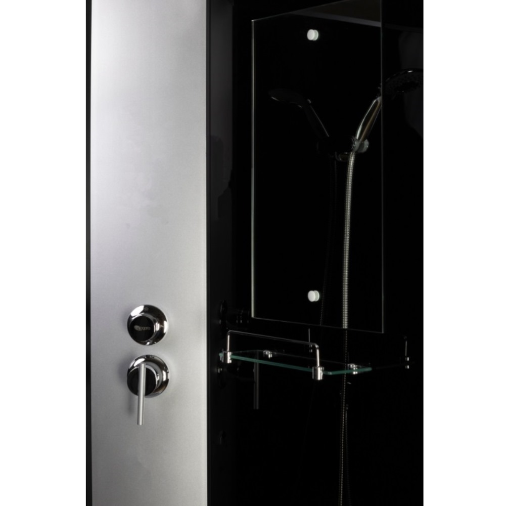 Душевая кабина Niagara Classic имеет размеры 90х90х215 см. Форма — четверть круга, цвет хром, исполнение полотна двери тонированное. Механизм открывания раздвижной. Поддон средний.