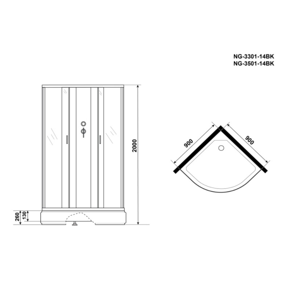 Душевая кабина Niagara Classic имеет размеры 90х90х200 см. Форма — четверть круга, цвет хром, исполнение полотна двери тонированное. Механизм открывания раздвижной. Поддон средний.