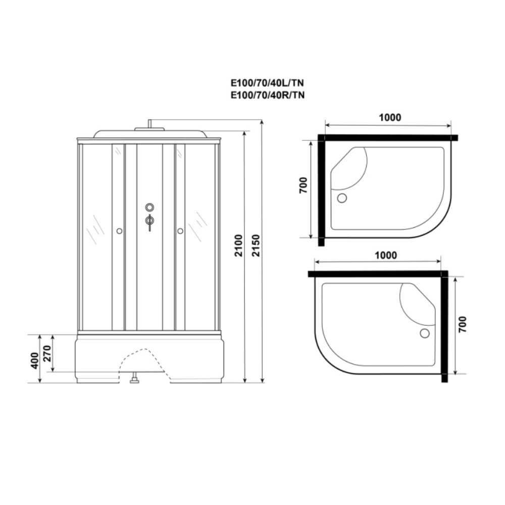 Душевая кабина Niagara Eco 100х70 правая Хром / Тонированное E100/70/40R/TN