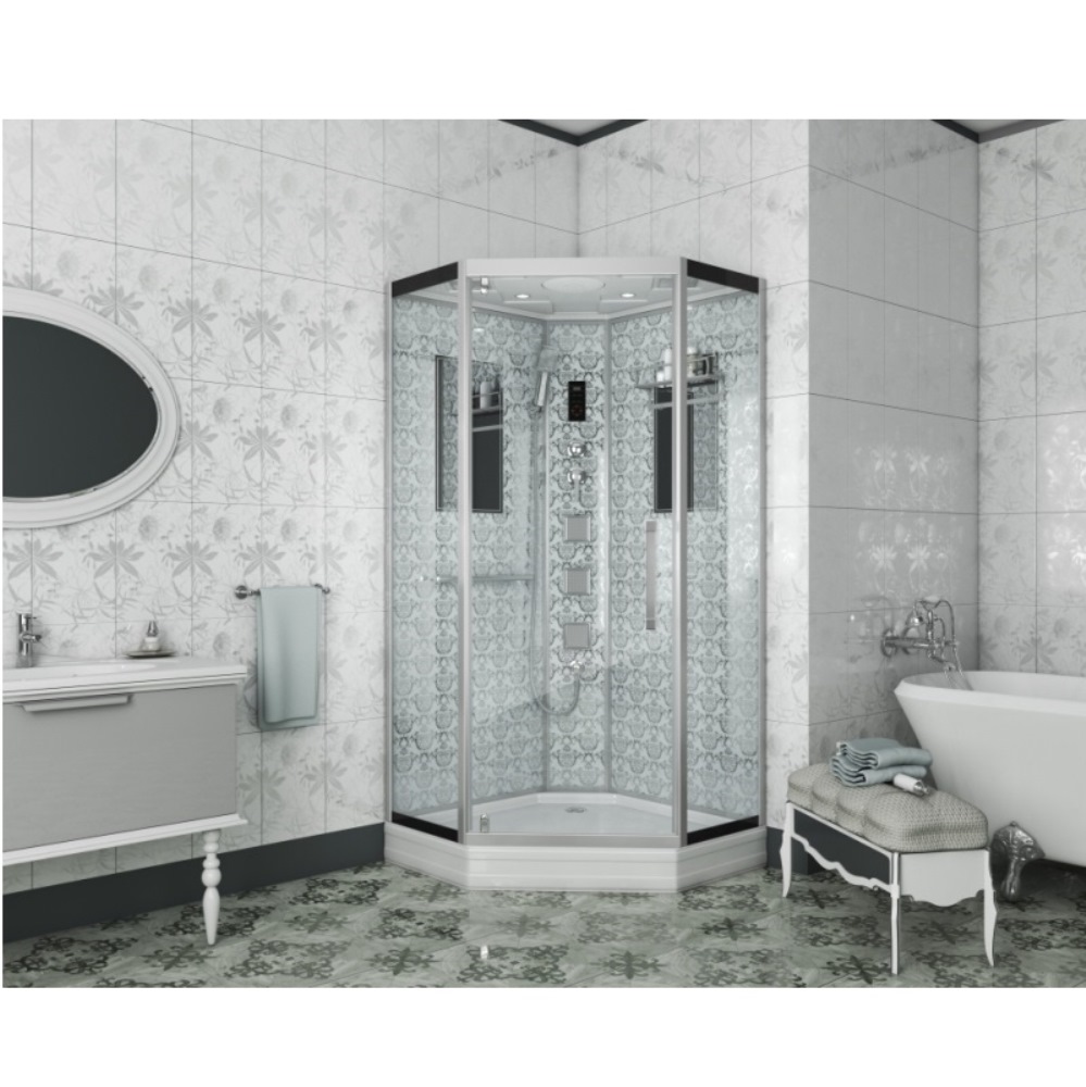 Душевая кабина Niagara Luxe имеет размеры 100х100х220 см. Форма — пятиугольная, цвет хром, исполнение полотна двери прозрачное. Механизм открывания раздвижной. Поддон низкий.