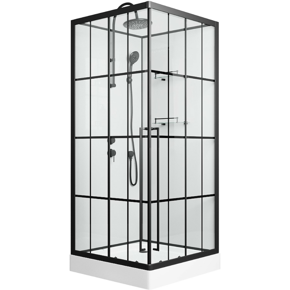 Душевая кабина Niagara Standart имеет размеры 100х100х225 см. Форма — квадратная, цвет черный, исполнение полотна двери прозрачное. Механизм открывания раздвижной. Поддон низкий.