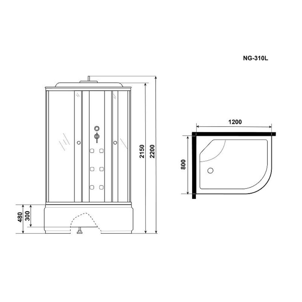 Душевая кабина Niagara Ultra имеет размеры 80х120х220 см. Форма — асимметричная, цвет хром, исполнение полотна двери прозрачное. Механизм открывания раздвижной. Поддон высокий.