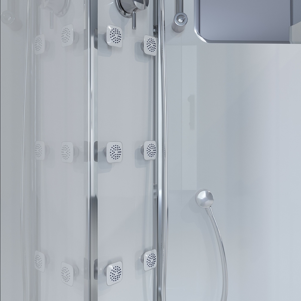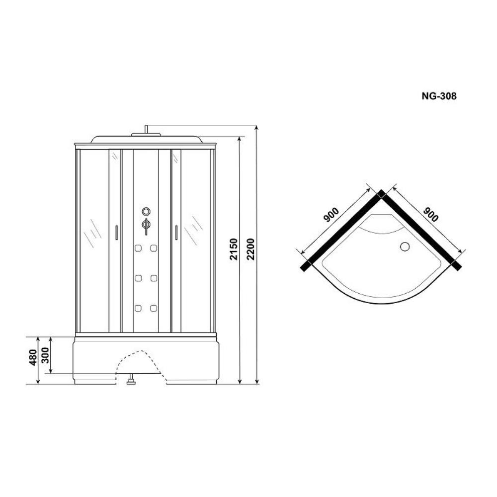 Душевая кабина Niagara Ultra имеет размеры 90х90х220 см. Форма — четверть круга, цвет хром, исполнение полотна двери прозрачное. Механизм открывания раздвижной. Поддон высокий.