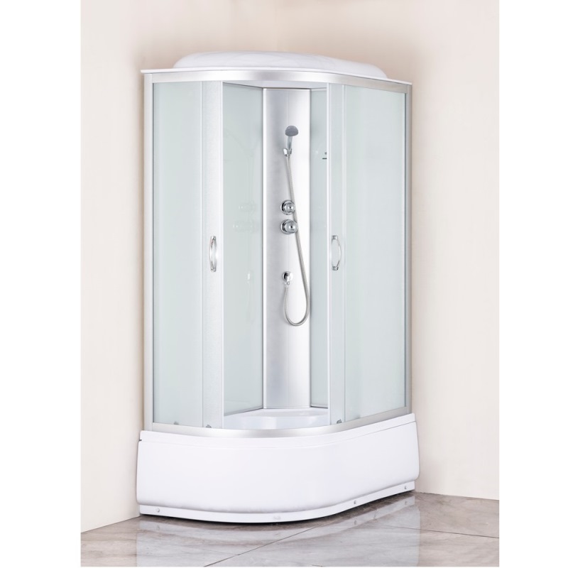 Душевая кабина Taliente TA имеет размеры 120х80х215 см. Форма — асимметричная, профиль хром, исполнение полотна двери матовое. Механизм открывания раздвижной. Поддон высокий.