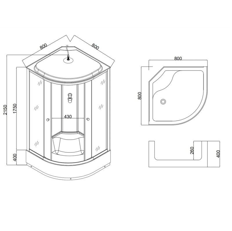 Душевая кабина Taliente TA имеет размеры 80х80х215 см. Форма — четверть круга, профиль хром, исполнение полотна двери тонированное. Механизм открывания раздвижной. Поддон высокий.