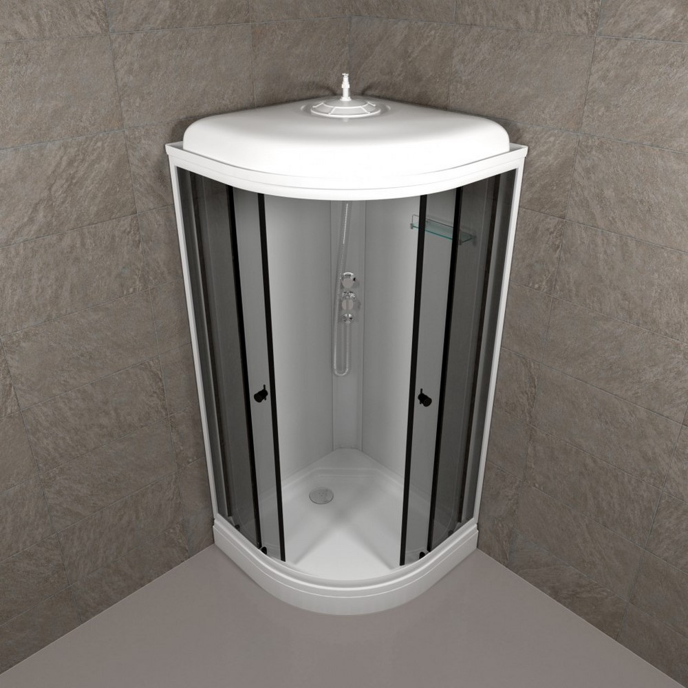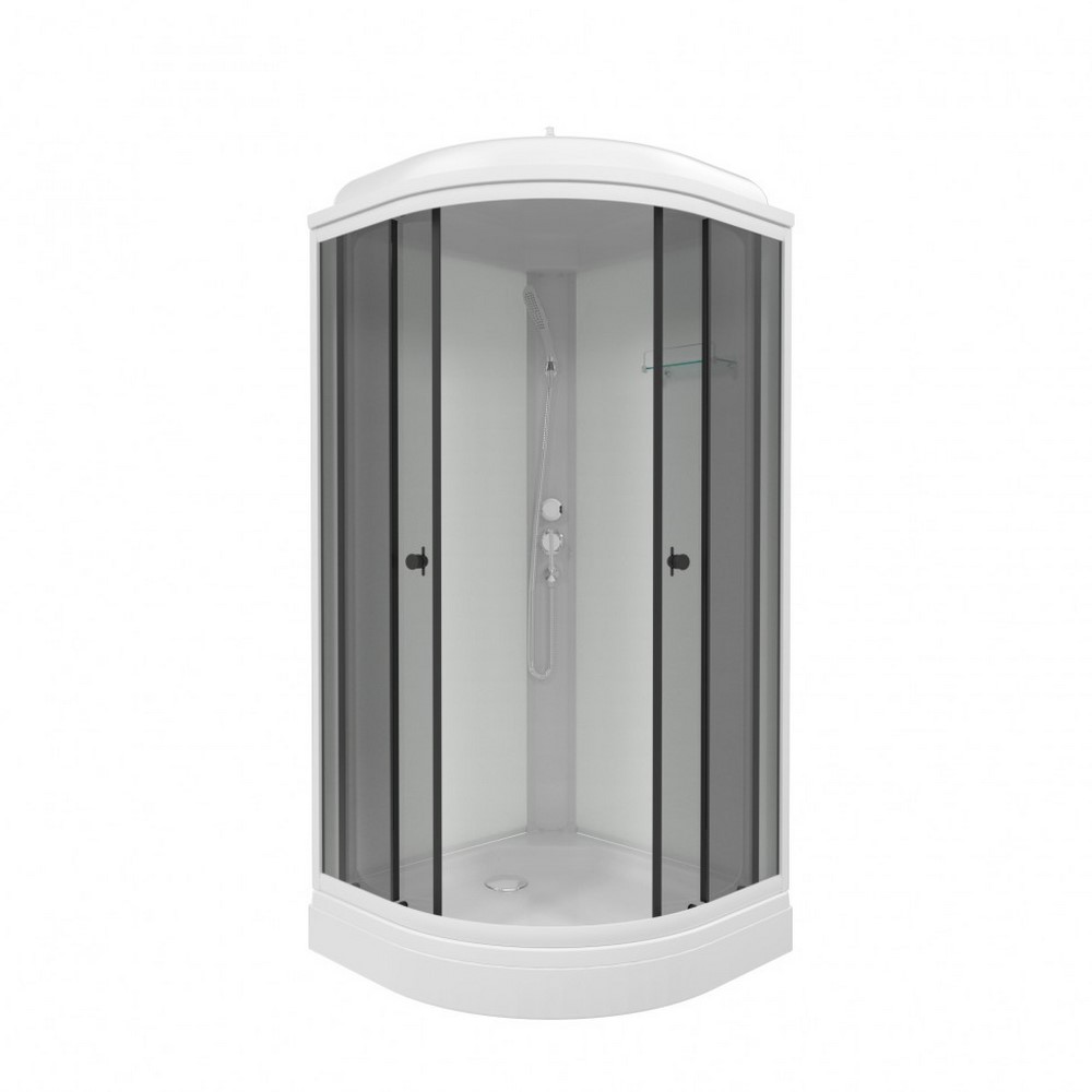 Душевая кабина Triton Грей А имеет размеры 90х90 см. Форма — четверть круга, цвет белый, исполнение полотна двери тонированное. Механизм открывания раздвижной. Низкий поддон.