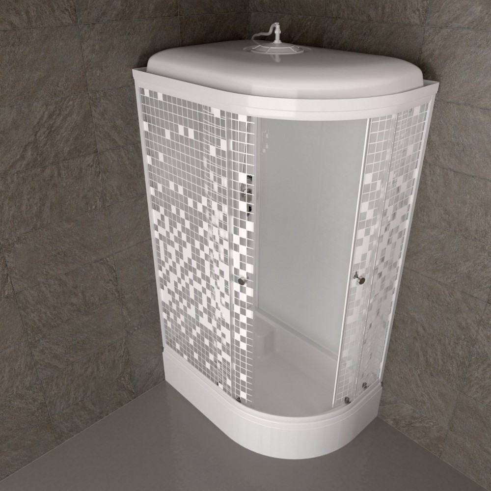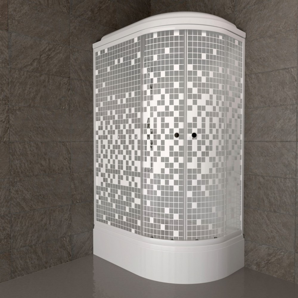 Душевая кабина Triton Коралл В имеет размеры 120х80 см. Форма — асимметричная, цвет белый, исполнение полотна двери с рисунком. Механизм открывания раздвижной. Средний поддон.