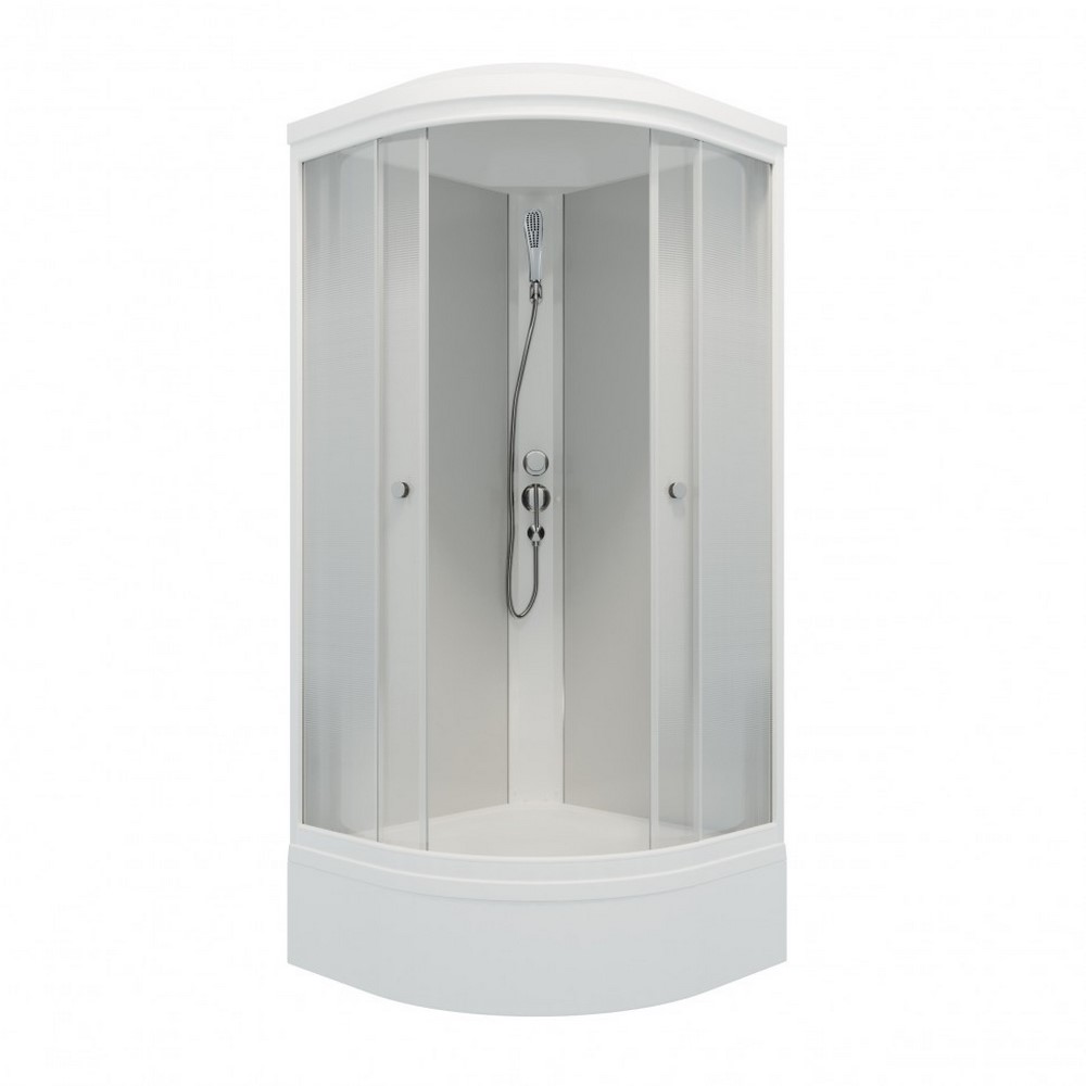 Душевая кабина Triton Лайт В имеет размеры 90х90 см. Форма — четверть круга, цвет белый, исполнение полотна двери с рисунком. Механизм открывания раздвижной. Средний поддон.