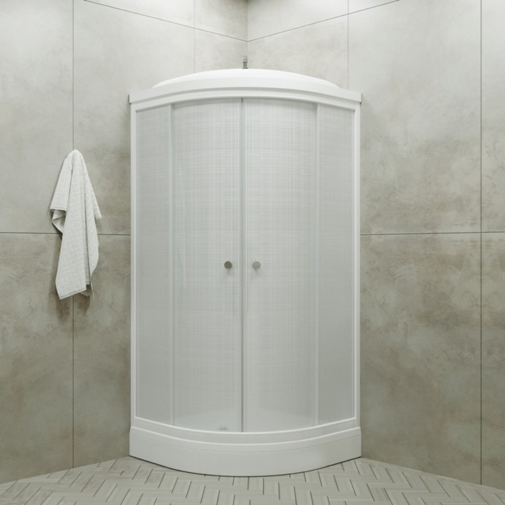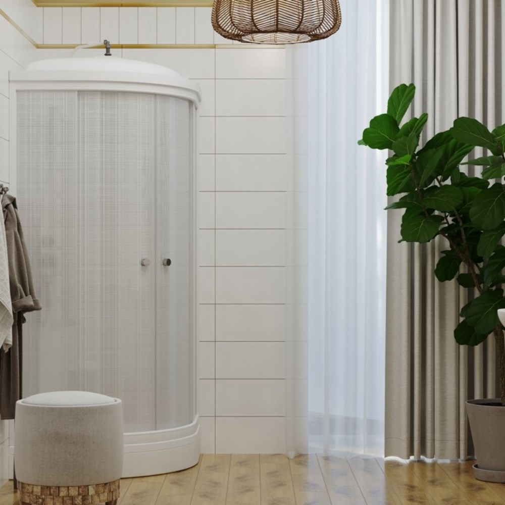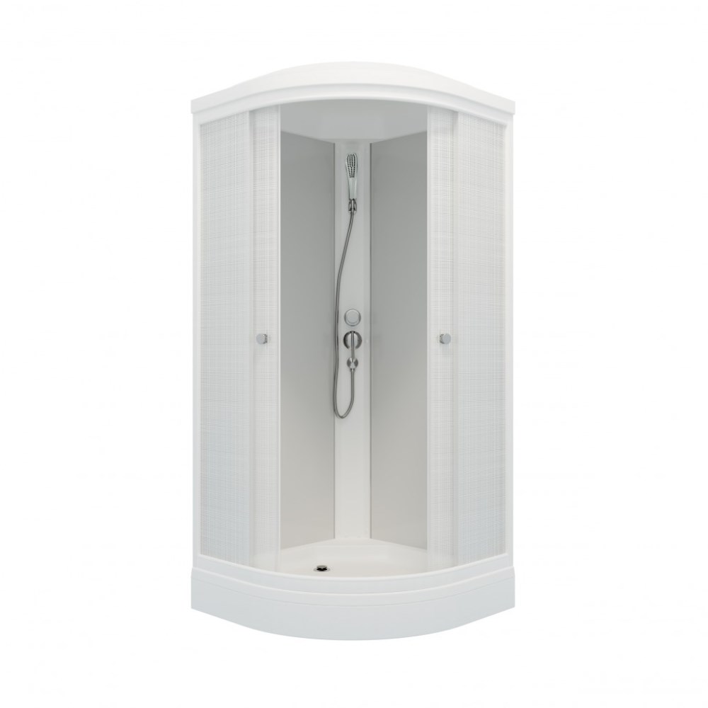 Душевая кабина Triton Лён А имеет размеры 90х90 см. Форма — четверть круга, цвет белый, исполнение полотна двери с рисунком. Механизм открывания раздвижной. Низкий поддон.