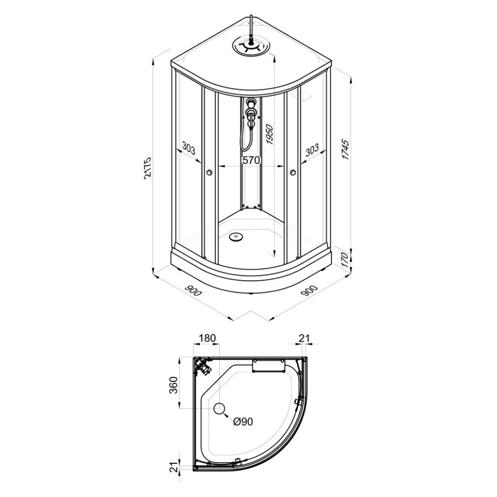 | Габариты | 90 × 90 × 217 см |