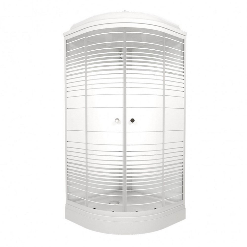 Душевая кабина Triton Полосы А имеет размеры 100х100 см. Форма — четверть круга, цвет белый, исполнение полотна двери с рисунком. Механизм открывания раздвижной. Низкий поддон.