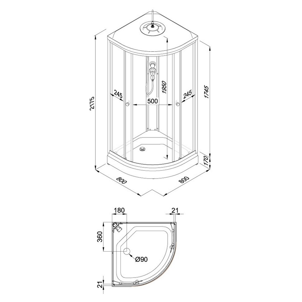 | Габариты | 80 × 80 × 217 см |