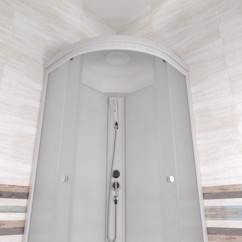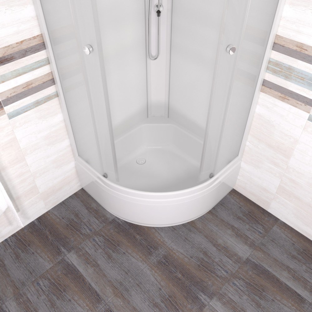 Душевая кабина Triton Вельвет В имеет размеры 80х80 см. Форма — четверть круга, цвет белый, исполнение полотна двери матовое. Механизм открывания раздвижной. Средний поддон.