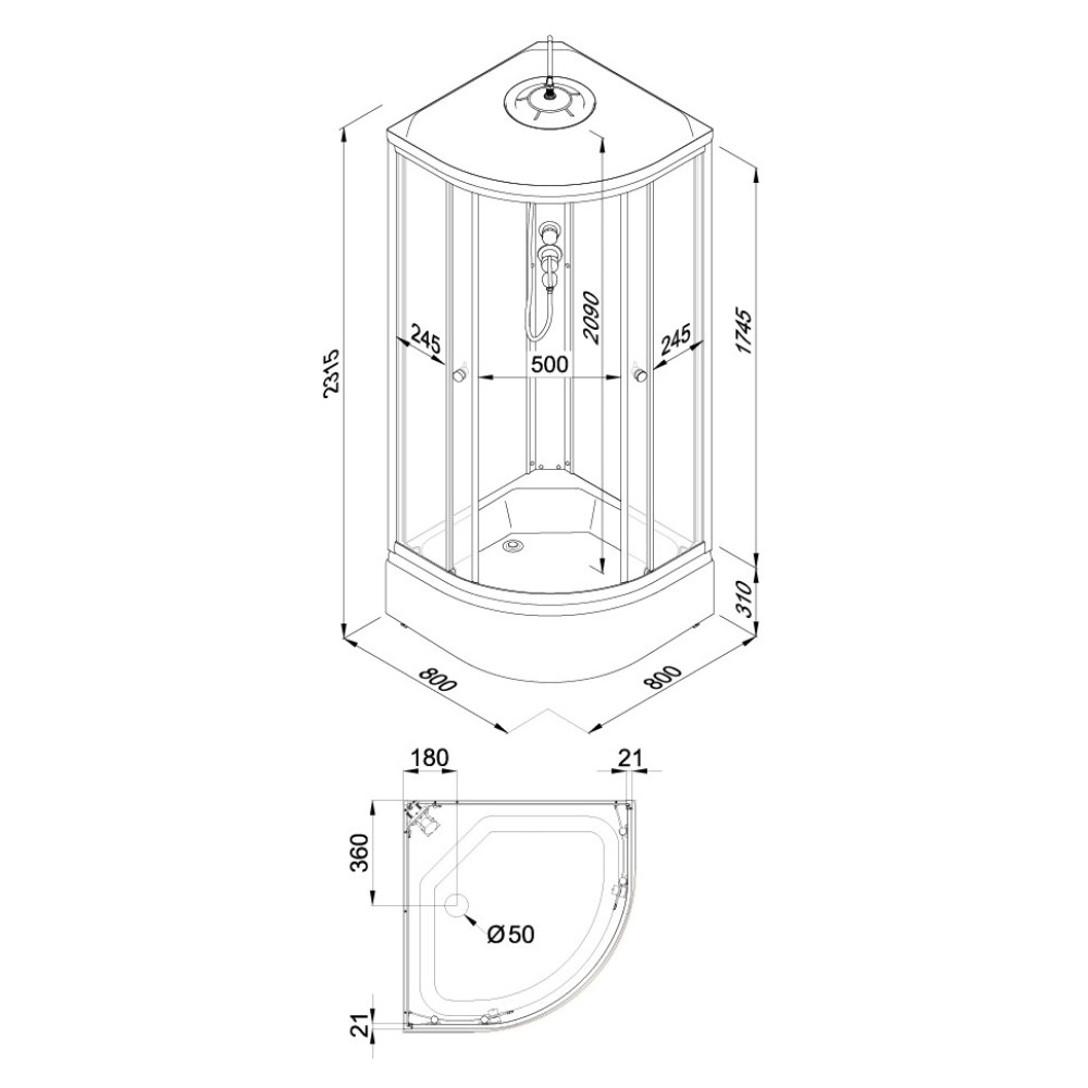 | Габариты | 80 × 80 × 231 см |