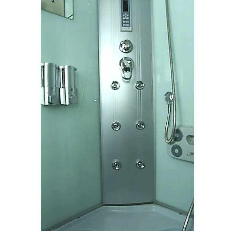 Душевая кабина ВМ-8315 100Б Водный мир 100х100 — идеальное решение для создания комфортного и роскошного водного пространства в вашей ванной. Эта превосходная модель сочетает в себе стильный дизайн и превосходные функциональные возможности. Основными особенностями этой душевой кабины являются хромированный профиль и матовое стекло, которые придают ей элегантный и современный вид. Более того, она оборудована низким поддоном, что делает ее использование удобным и безопасным. Превосходное качество и надежность этой модели обеспечиваются усиленным стальным каркасом и регулируемыми ножками. Кроме того, кабина оснащена латунным сливом с гидрозатвором, который предотвращает протекание воды. Благодаря серебристому алюминиевому профилю и закаленному травмобезопасному стеклу, эта душевая кабина обладает высокой прочностью и надежностью. Встроенный электронный пульт управления позволяет легко и удобно контролировать освещение, вентиляцию и FM-радио внутри кабины. Дополнительная декоративная светодиодная подсветка создает атмосферу релаксации и комфорта. Эта модель также оснащена высококачественным латунным смесителем с керамическим картриджем, который обеспечивает плавное и надежное регулирование температуры воды. В душевой кабине ВМ-8315 100Б Водный мир 100х100 установлен верхний тропический душ D250мм, ручная лейка и 6 гидромассажных форсунок, которые позволят вам насладиться расслабляющими процедурами гидромассажа. Также в кабине имеется ножной массажер для дополнительного удовольствия. Одна из важных особенностей этой душевой кабины — возможность установки парогенератора, что позволит вам наслаждаться целебными процедурами парового лечения. Душевая кабина ВМ-8315 100Б Водный мир 100х100 также оснащена полкой для косметических принадлежностей, дозаторами для жидкого мыла, зеркалом, выполненным из влагостойкого материала, и откидным сиденьем для удобства использования. Помимо всех этих преимуществ, передние боковые стекла данной душевой кабины имеют радиусную форму и закрыты профилями. Это придает ей завершенный и элегантный вид. Душевая кабина ВМ-8315 100Б Водный мир 100х100 — идеальное решение для создания роскошного и комфортного водного пространства в вашей ванной. Покупая эту модель, вы получаете современный дизайн, надежность и функциональность, которые превратят вашу ванную комнату в уютное место отдыха и релаксации. Покупайте качественную и надежную душевую кабину ВМ-8315 100Б Водный мир 100х100 на sanural.ru и наслаждайтесь комфортом и удовольствием каждый день!